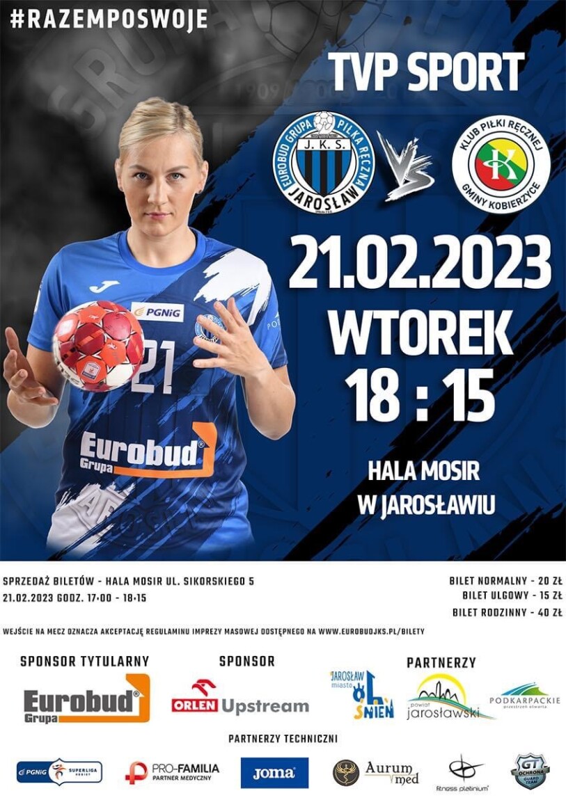 Już w najbliższy wtorek 21 lutego zapraszamy Państwa na kolejną dawkę emocji, których dostarczą Jarosławianki z Eurobud Grupa JKS Jarosław w kolejnym meczu ligowym. Tym razem zespól rozegra spotkanie z KPR Kobierzyce. Początek spotkania o godz. 18.15 w jarosławskiej Hali MOSiR, która, liczymy, że wypełniona będzie przez kibiców po brzegi 🙂
