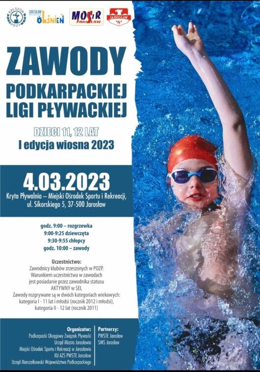 W sobotę 4 marca na Krytej Pływalni MOSiR o godz. 9.00 zmagania sportowe rozpoczną dzieci roczników 2012 i młodsi oraz 2011, w ramach rozpoczynającej się Podkarpackiej Ligi Pływackiej, której I edycja odbędzie się w Jarosławiu.