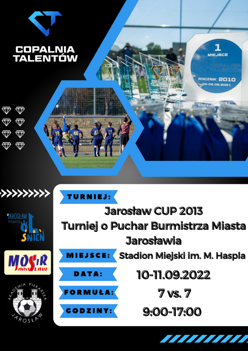 W dniach 10/11 września 2022 r. na Stadionie Miejskim im. M. Haspla (ul. Piekarska) piłkarze rocznika 2013 i młodsi, reprezentujący kluby z całej Polski, powalczą o Puchar Burmistrza Miasta Jarosławia w kolejnej edycji turnieju piłkarskiego – Jarosław CUP.